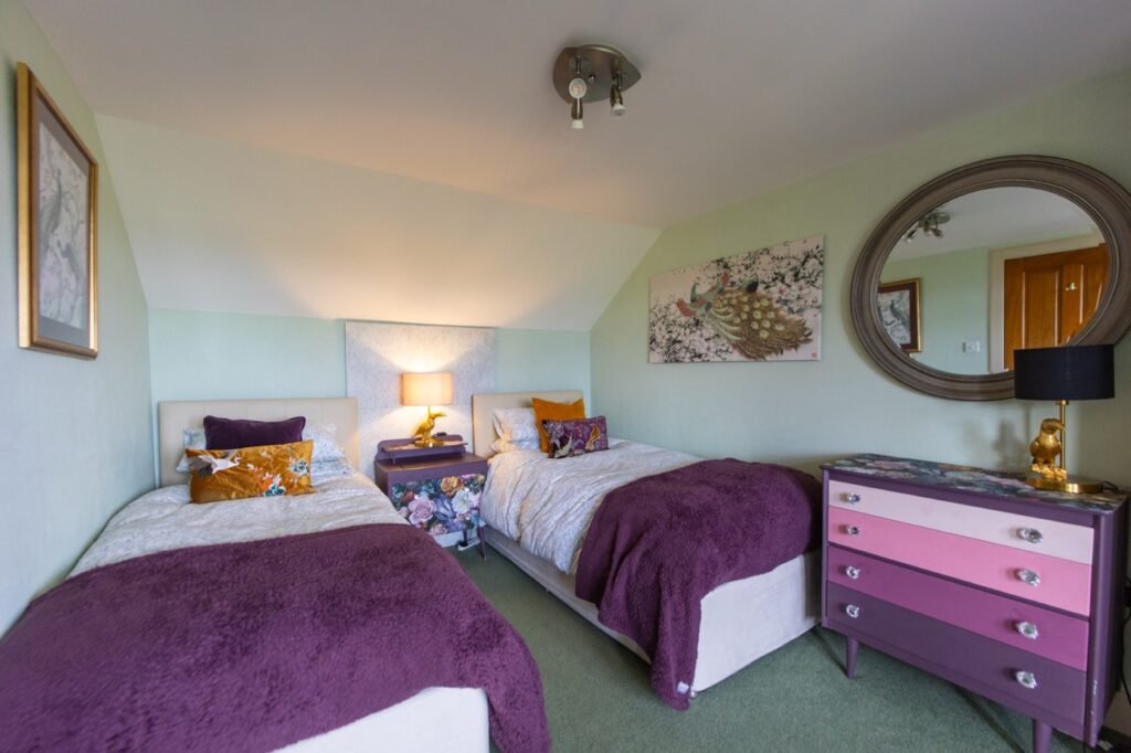 Also on the ground floor is a stylish family bathroom, featuring a traditional roll-top bath and plenty of space to unwind. Nearby, the Master Bedroom boasts a luxurious king-sized bed and serene décor, offering the perfect retreat after a day of exploring. There’s also a cosy single bedroom, ideal for a solo guest or child.